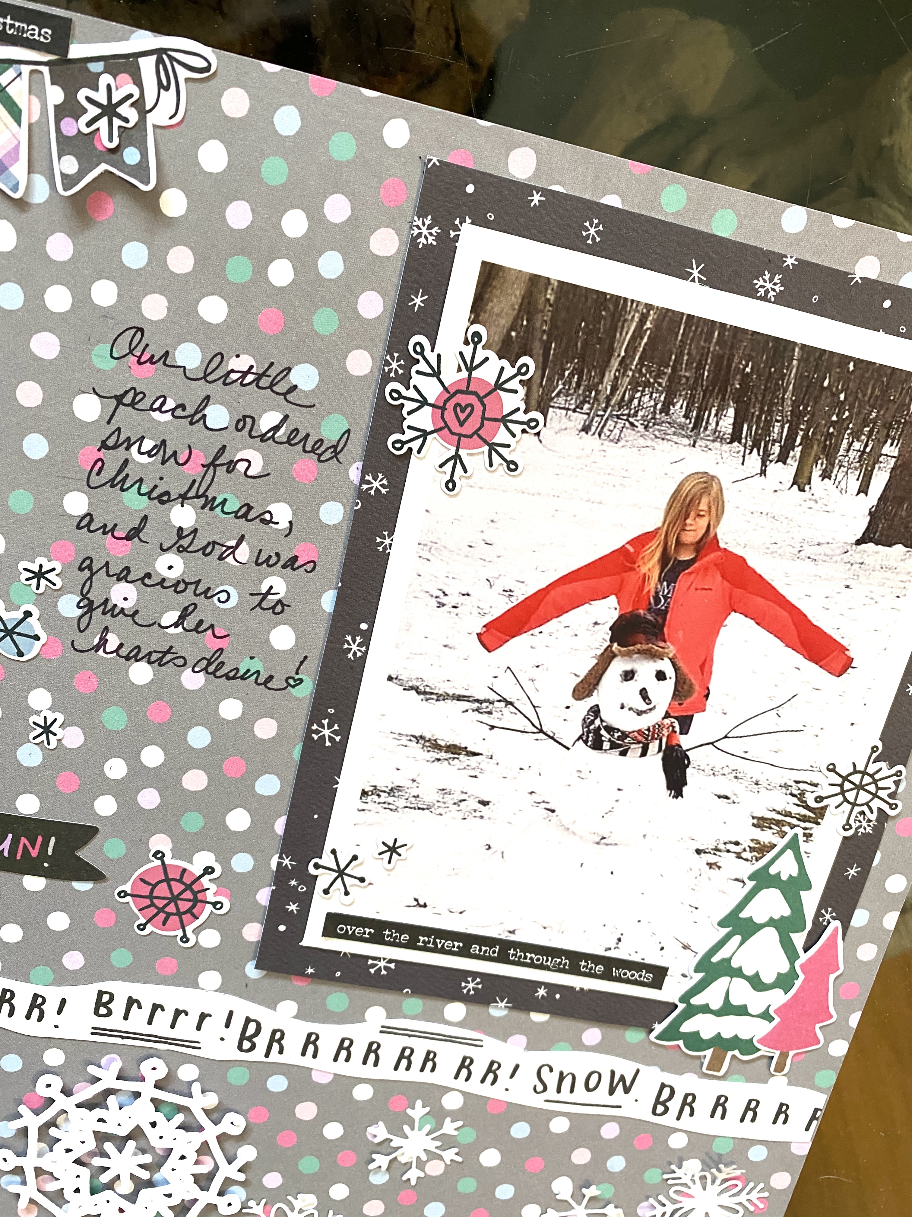 I started with this newly acquired 49 and Market Peace & Joy - North Pole paper for my background. I actually bought two for the b-side.